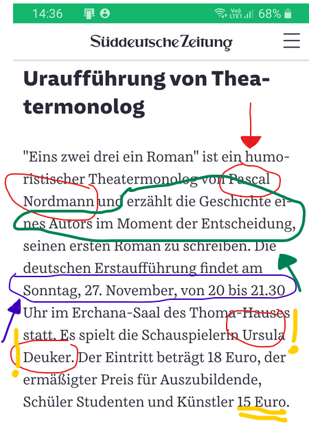Mise en scène: Gunda Nordmann. Avec Ursula Deuker dans le rôle de Mademoiselle Dekère.