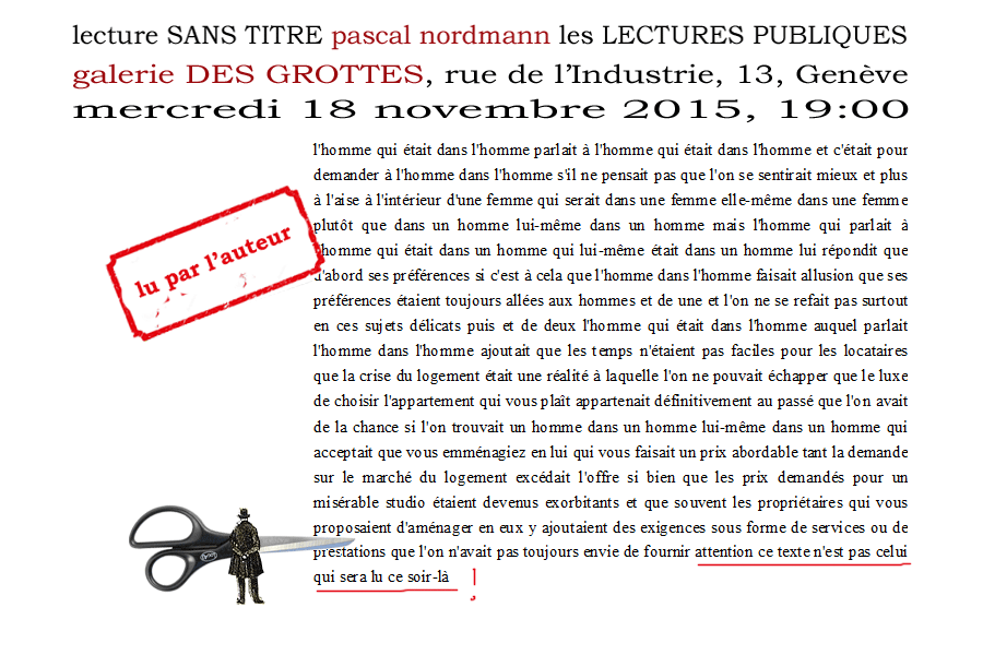 La fameuse conférence de Nordmann sur l'écriture dramatique. Avec Ahmed Belbachir, comédien et auteur. Avec GenPro v3, module de génération automatique de littérature, A l'occasion de la sortie du livre des Ecrivains Associés du Théâtre de Suisse