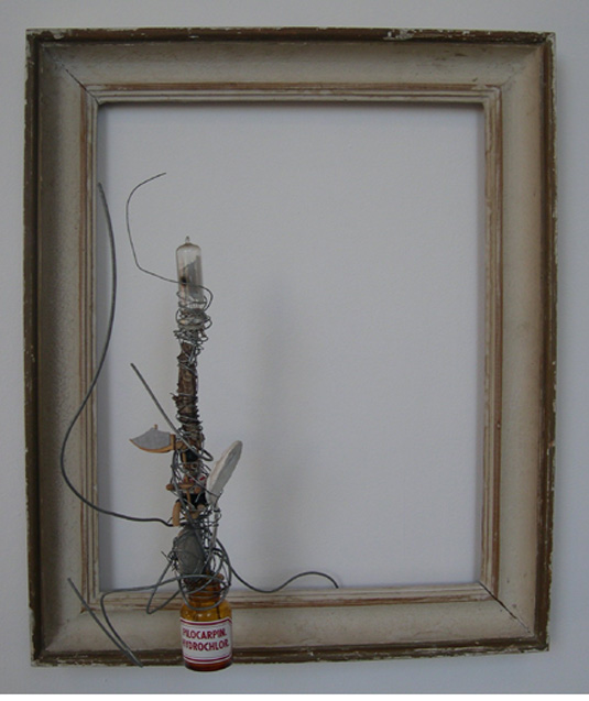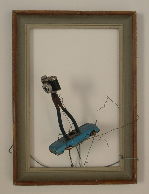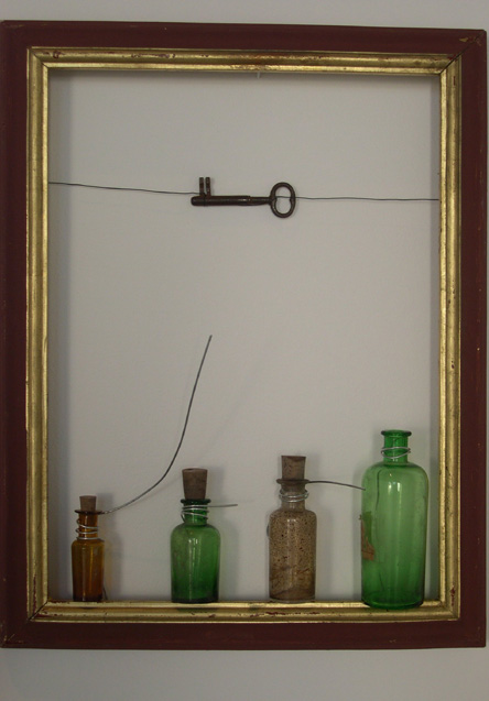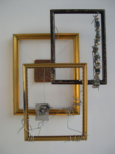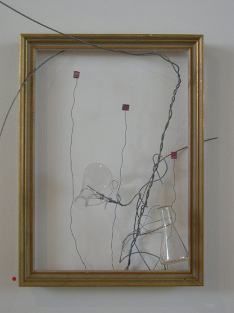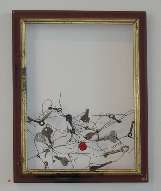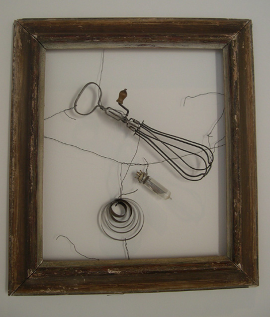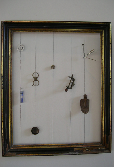 Deux montres, une pelle, le tout suspendu sur fils tendus